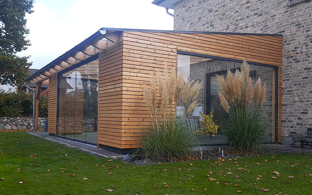Ein Wintergarten aus Holz ist der perfekte Ort, um das ganze Jahr über die Natur zu genießen. Mit maßgeschneiderten Lösungen für Verglasungen und Seitenwände bieten wir Ihnen die ideale Erweiterung Ihres Wohnraums.